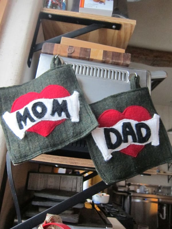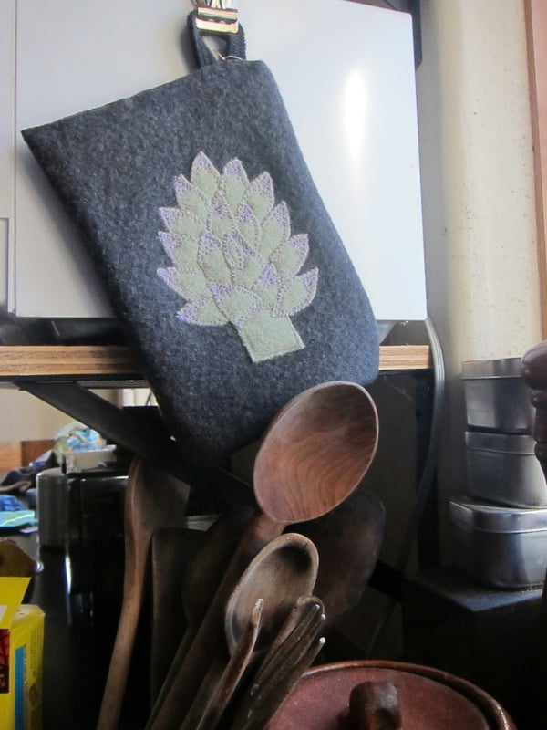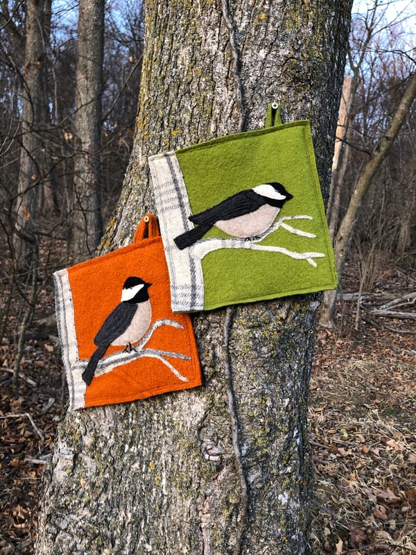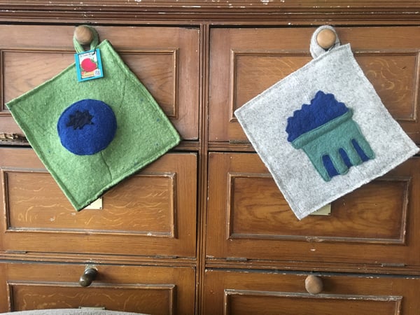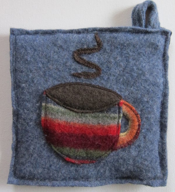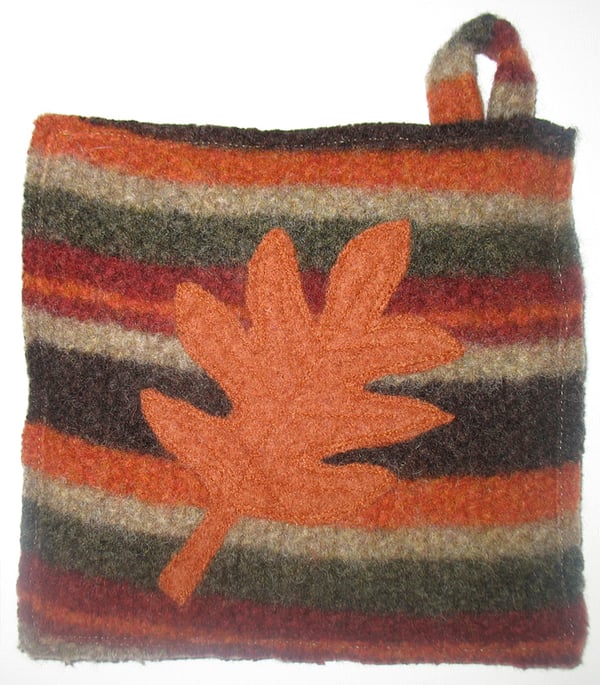 8"x8" Handmade from RECYCLED wool sweaters, felted thoroughly for durability. Each potholder is 4 layers thick for high heat resistance.